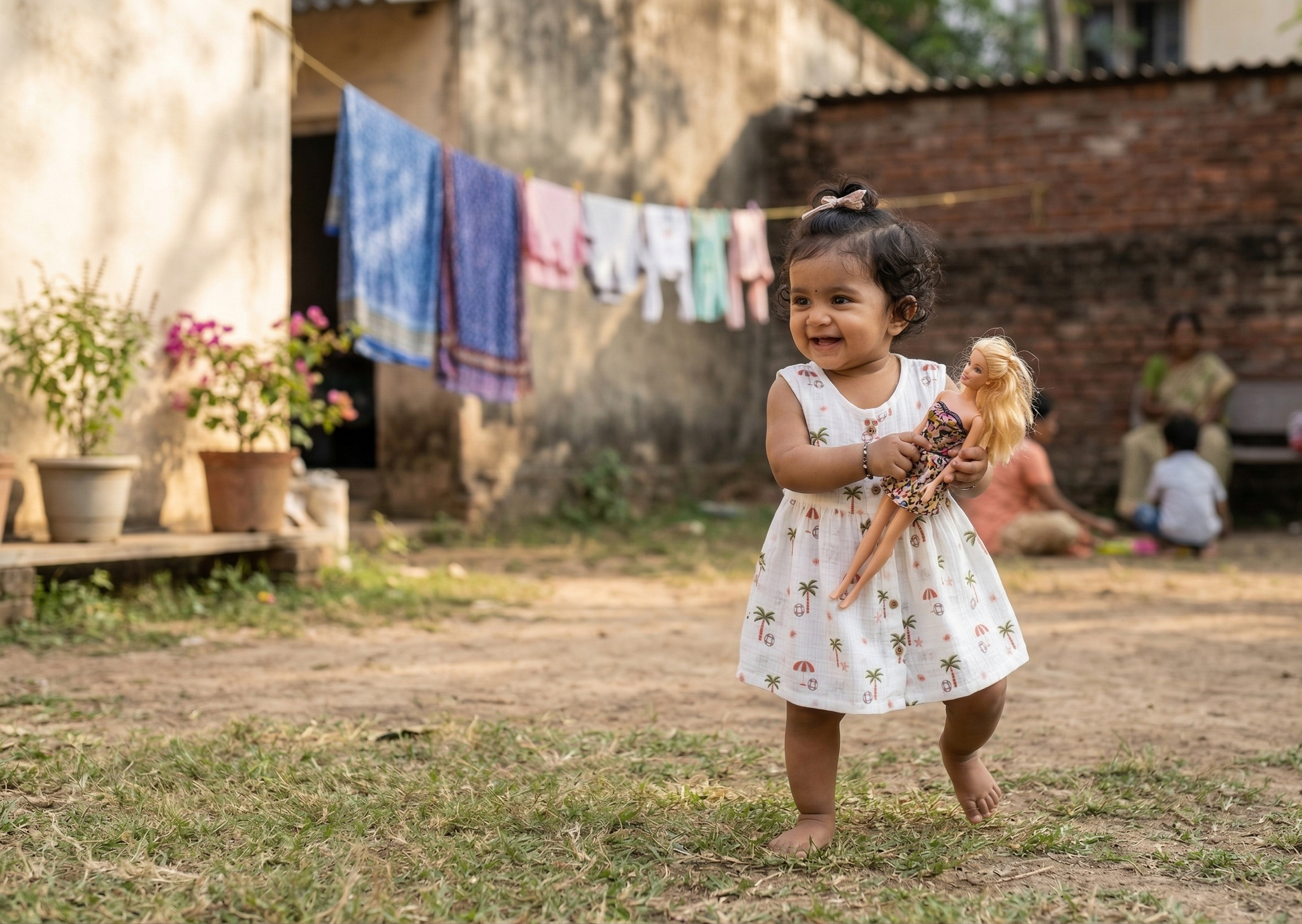 Description: The Island Breeze Sleeveless Dress is a soft and breathable everyday essential made from 100% organic cotton muslin. Featuring a playful tropical print with palm trees and beach elements, it includes a sleeveless design, gathered waist, and front-button closure for easy and comfortable wear.