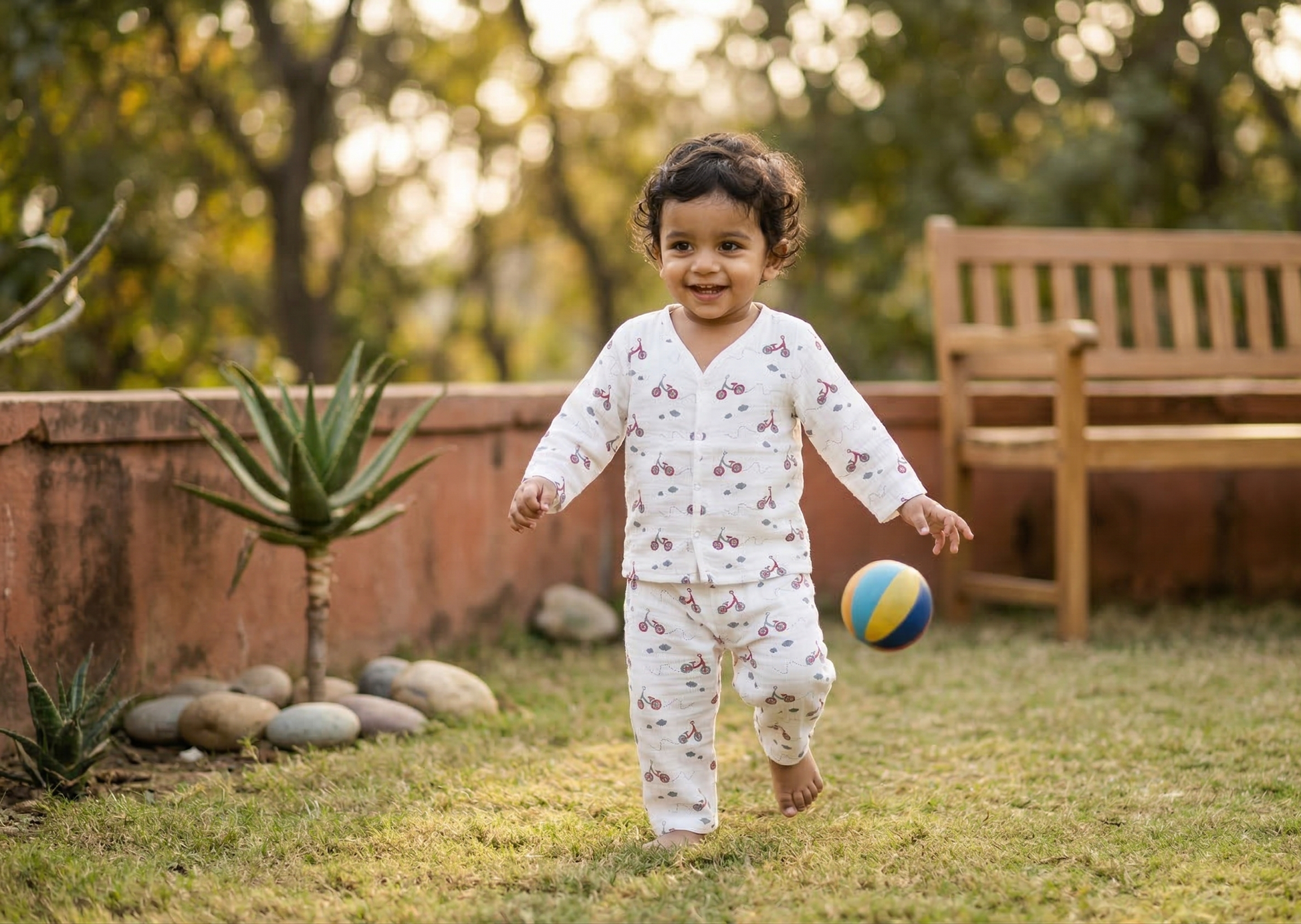 Description: The Little Cyclist Set is a soft and breathable two-piece outfit made from 100% organic cotton muslin. Featuring a charming bicycle and cloud print, it includes a snap-button top and elasticated waistband for easy, comfortable wear.