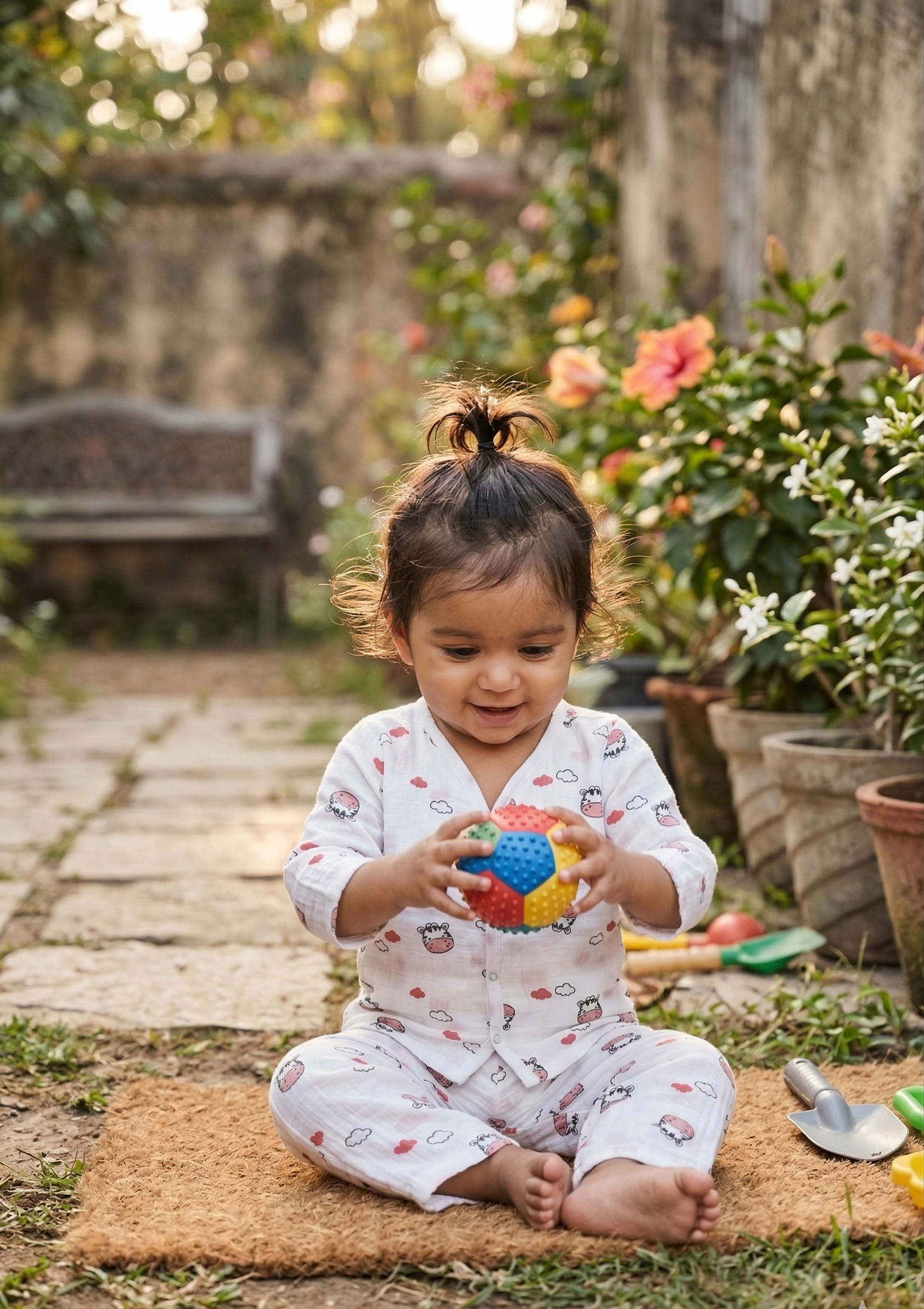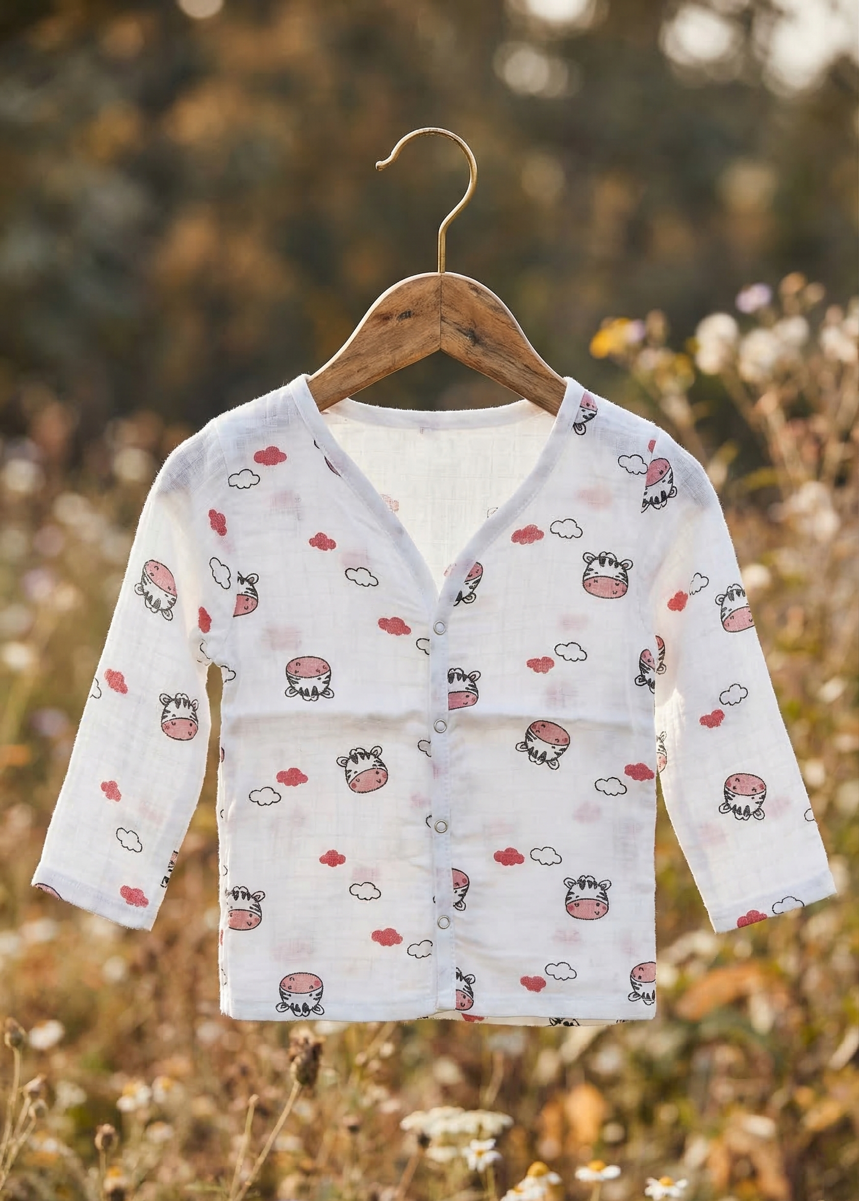 Description: The Happy Hippo Set is a soft and breathable two-piece outfit made from 100% organic cotton muslin. Featuring an adorable hippo and cloud print, it includes a snap-front top and elasticated waistband for easy and comfortable wear.